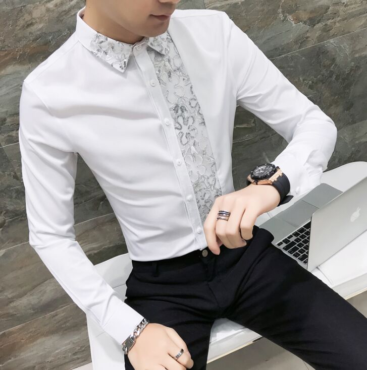 2018 New Fashion Brand Men Shirt Pocket Fight Leather Dress Shirt
