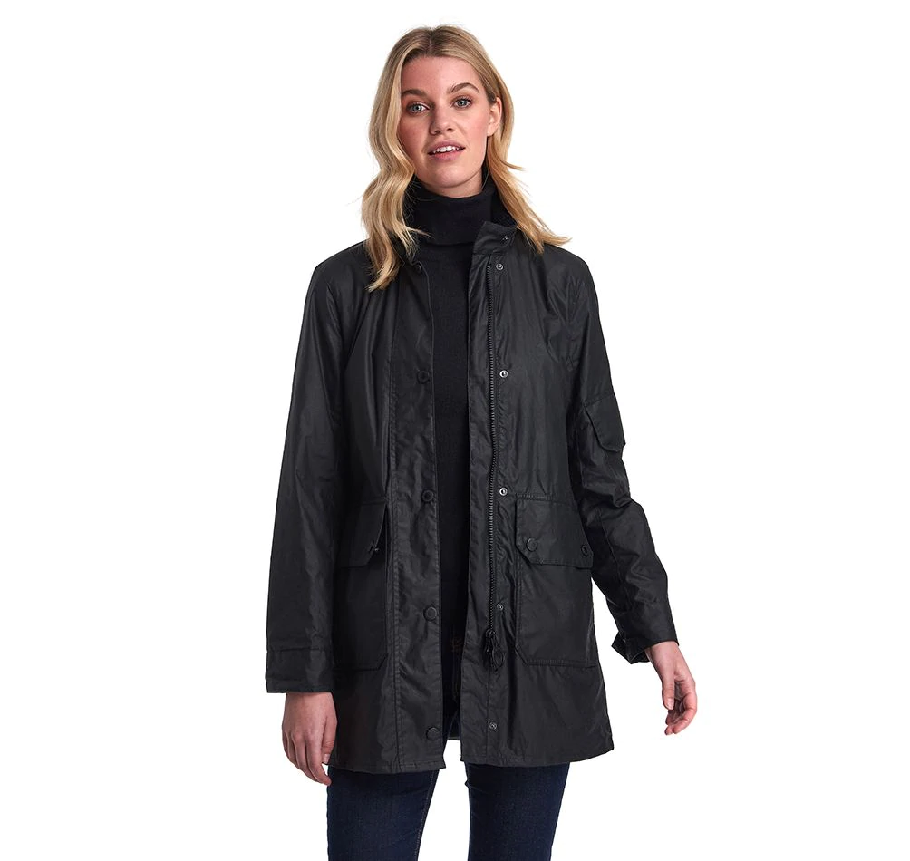 Barbour Women Reel Wax Jacket Black Blancsom