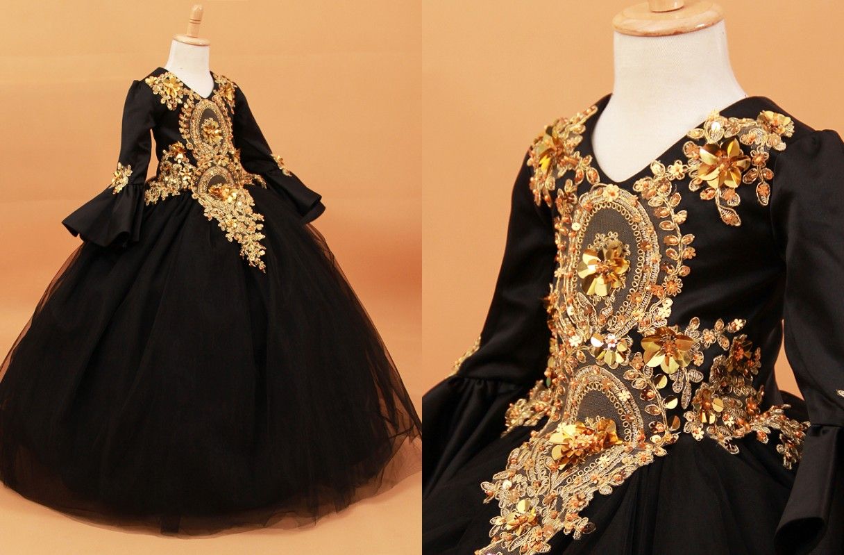 Sexy Black Gold Lace Flower Girls Dresses For Wedding With Juliet