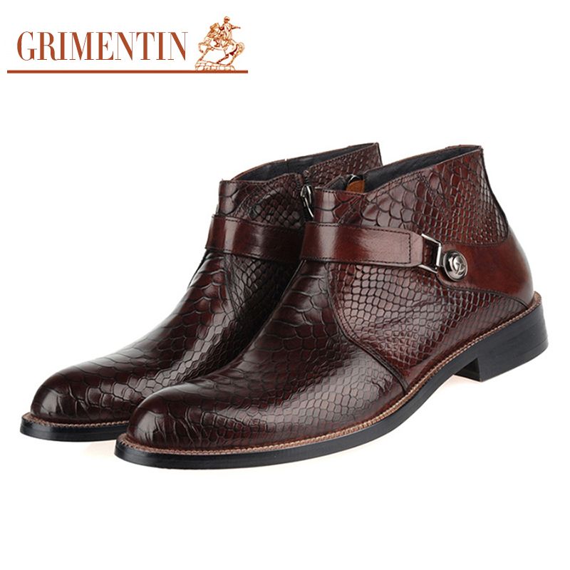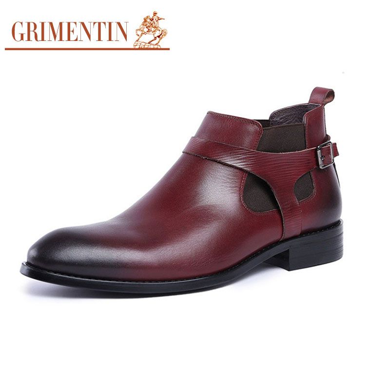 Grimentin 2020 New Brand Men Boots Genuine Leather Boot Wine Red