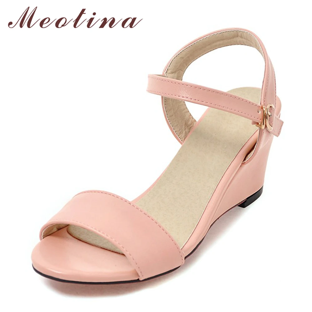Womens Casual Summer Black Real Leather Wedge Sandals Open Toe