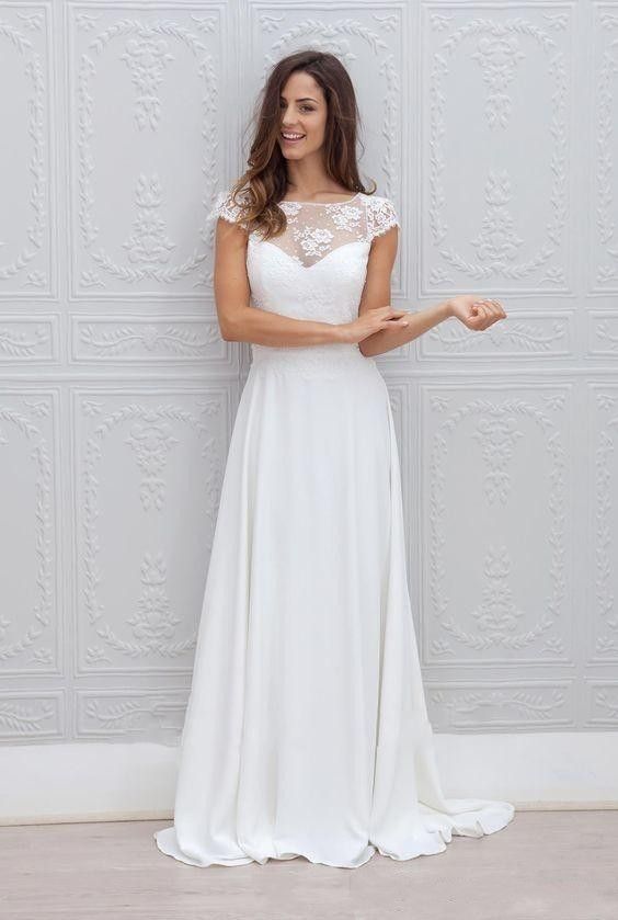 Discount Berta 2019 A Line Beach Wedding Dresses Cap Sleeve Sheer