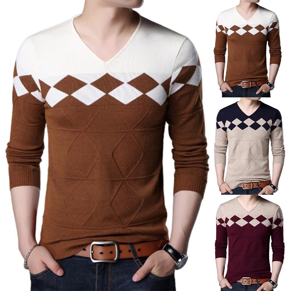Fulier Mens Winter Wool V Neck Sleeveless Vest Stripe Design