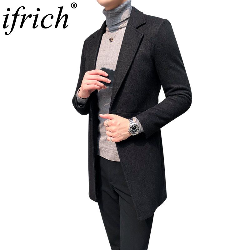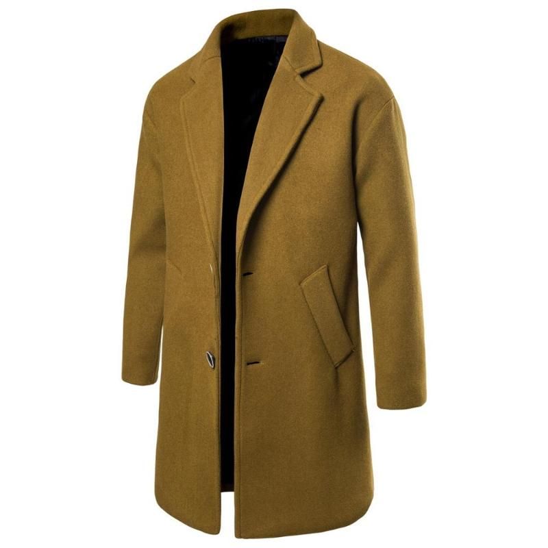 Mens Jacket Warm Winter Trench Coat Business Casual Smart Button