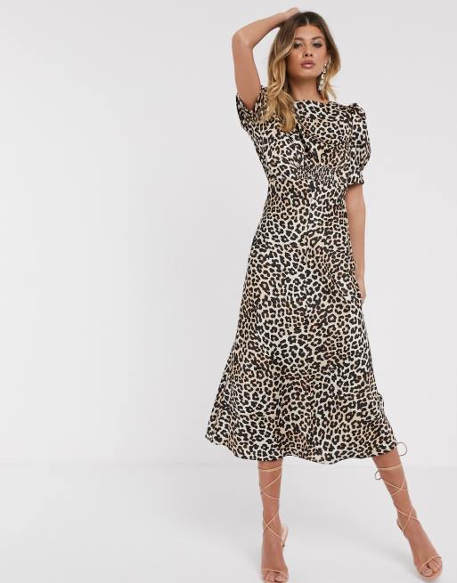 Brown Midi Dress Sexy Animal Print Dress Brown Leopard Print