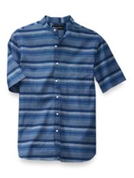 Kyleon Men S Linen Shirt Casual Stripe Button Down Band Collar 3 4