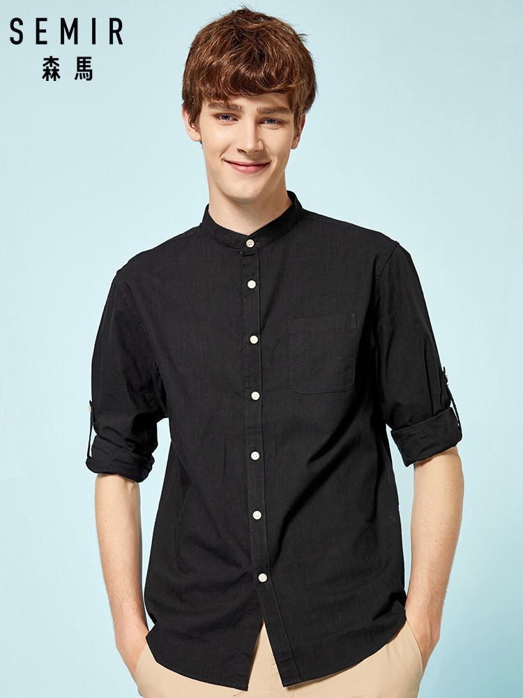 Wholesale Men S High Quality Banded Collar Pullover Linen Casual