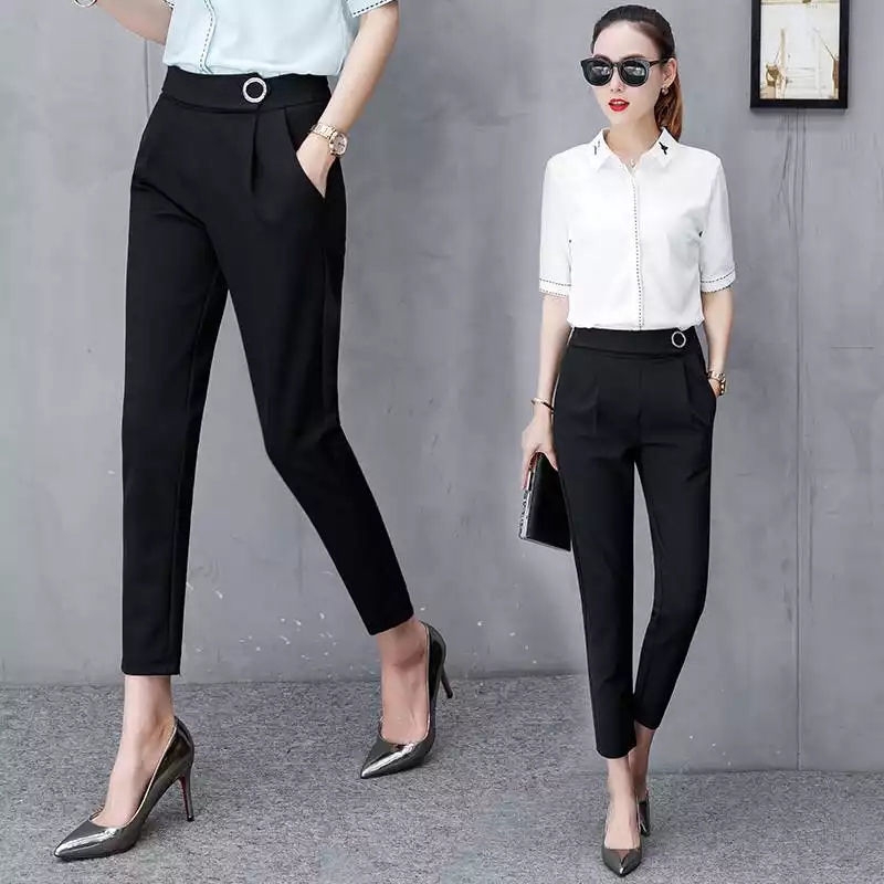 Black High Waist Peg Trousers Clothes Womens Basic Tops Outfits