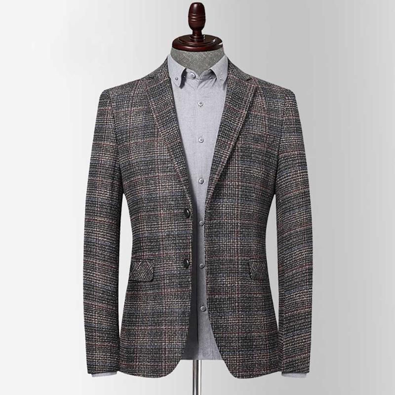 Men S Wool Blazer Striped Jacket Elbow Patch Blazer Tweed Blazers