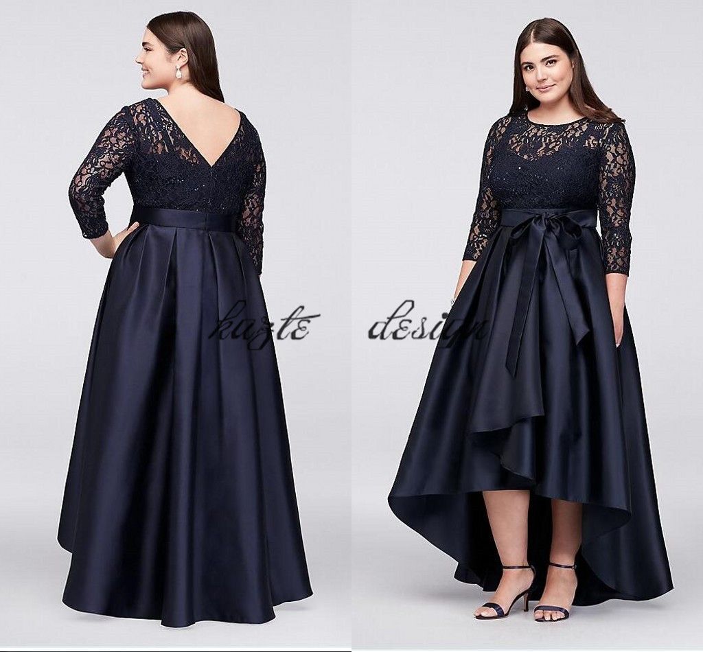 Navy Blue Patchwork Lace High Low Draped Sleeveless Homecoming