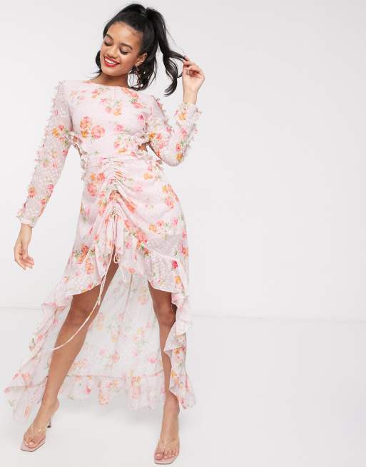 Blush Pink Floral Print Halter Neck Tie Maxi Dress Lime Lush