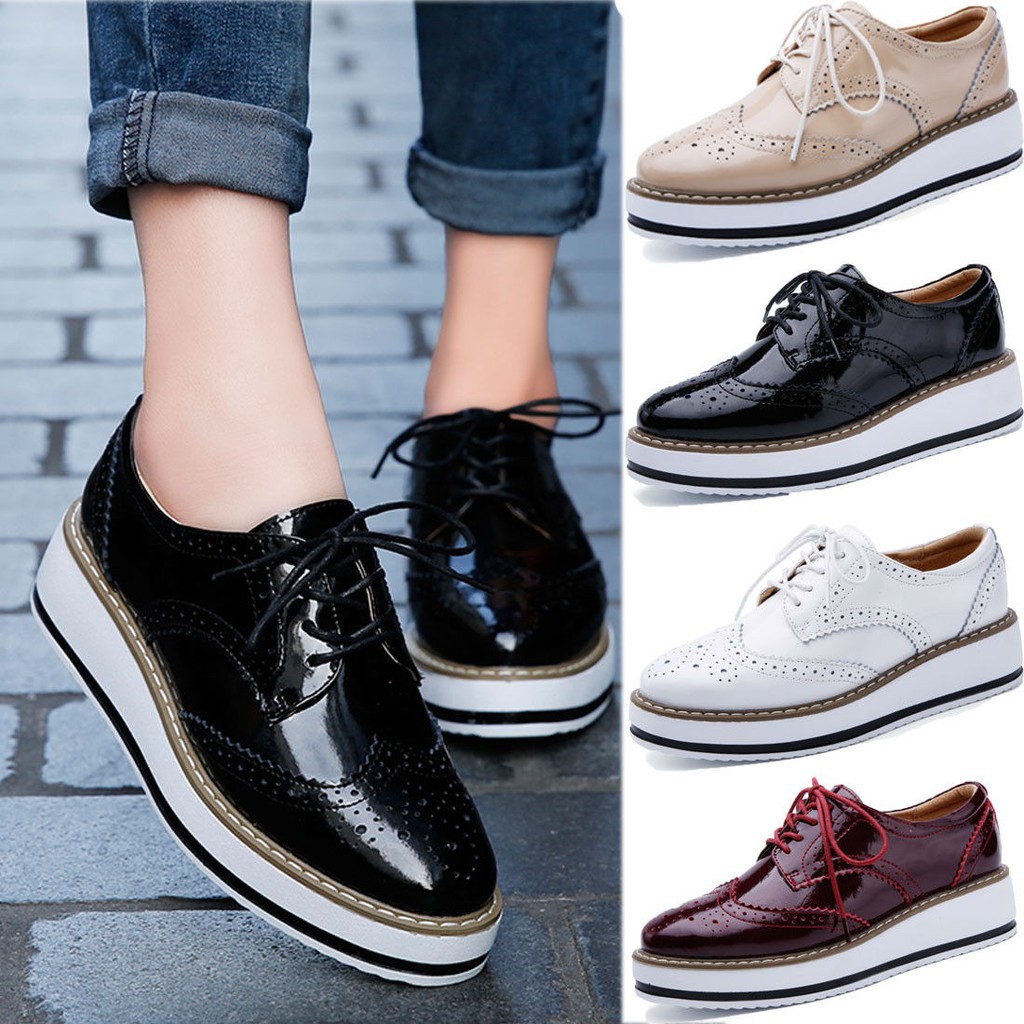Flat Platform Shoes Women Brogue Shoes Leather Pointed Toe Oxford