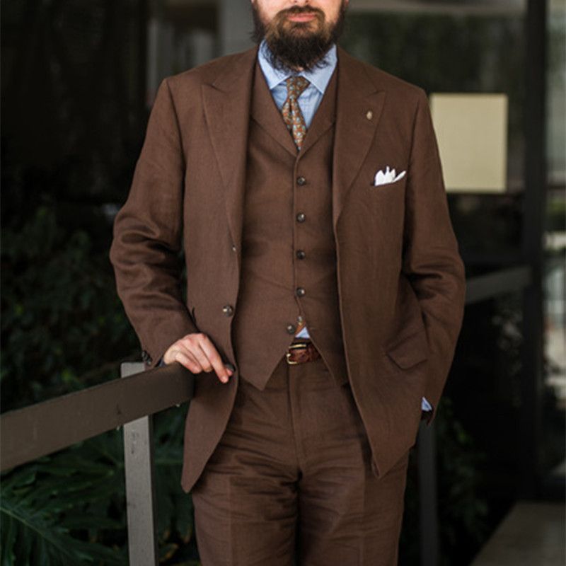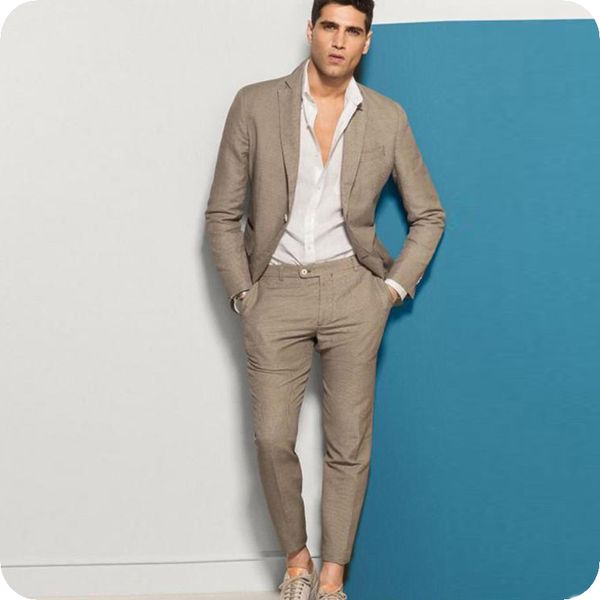2019 Latest Coat Pant Designs Brown Casual Linen Suit Men Summer