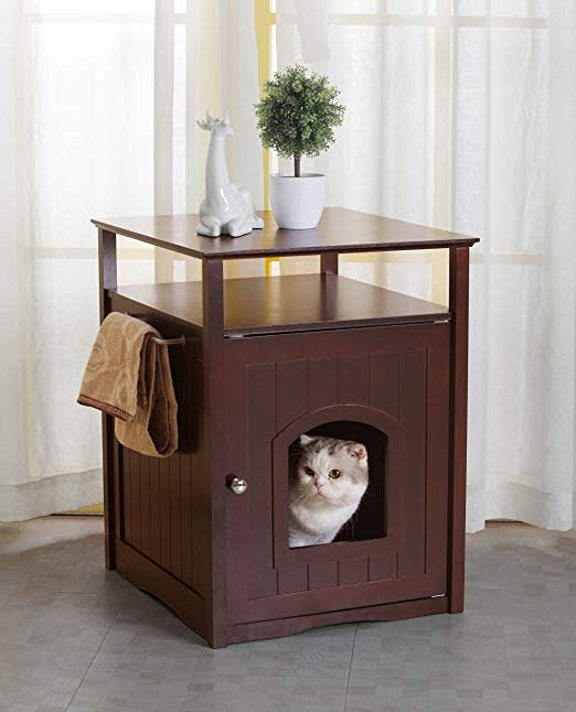 Amazon Com Walnut Nightstand Cat House And Litter Box Cover Designer Indoor Wooden Furniture Pet Crate Washroom And Bed Enclosure For Cats And Small Dogs By Pet Hup Hup Pet Supplies