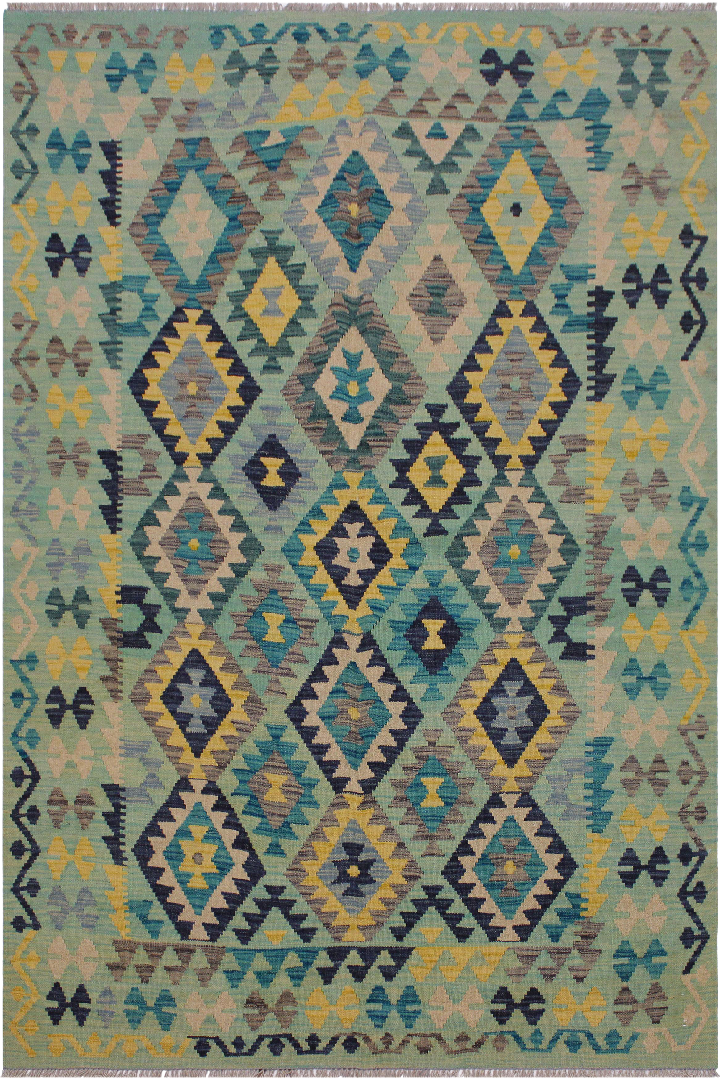 Boho Chic Kilim Caprice Gray Blue Hand Woven Wool Rug 5 2 X 6 6