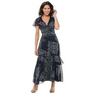 Sweet Ruffled Floral Print Chiffon Maxi Dress V Neck Short Sleeve