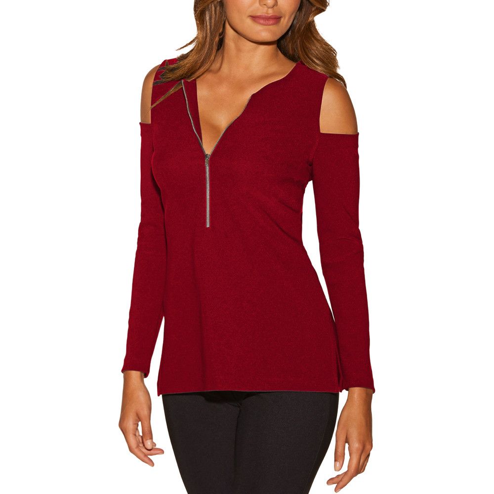 Women S Casual Cold Shoulder Top Long Sleeves Loose Fit Black
