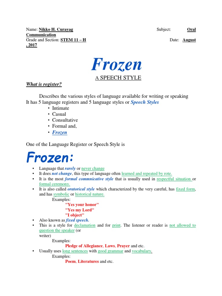 Oral Communication Types Of Speech Style