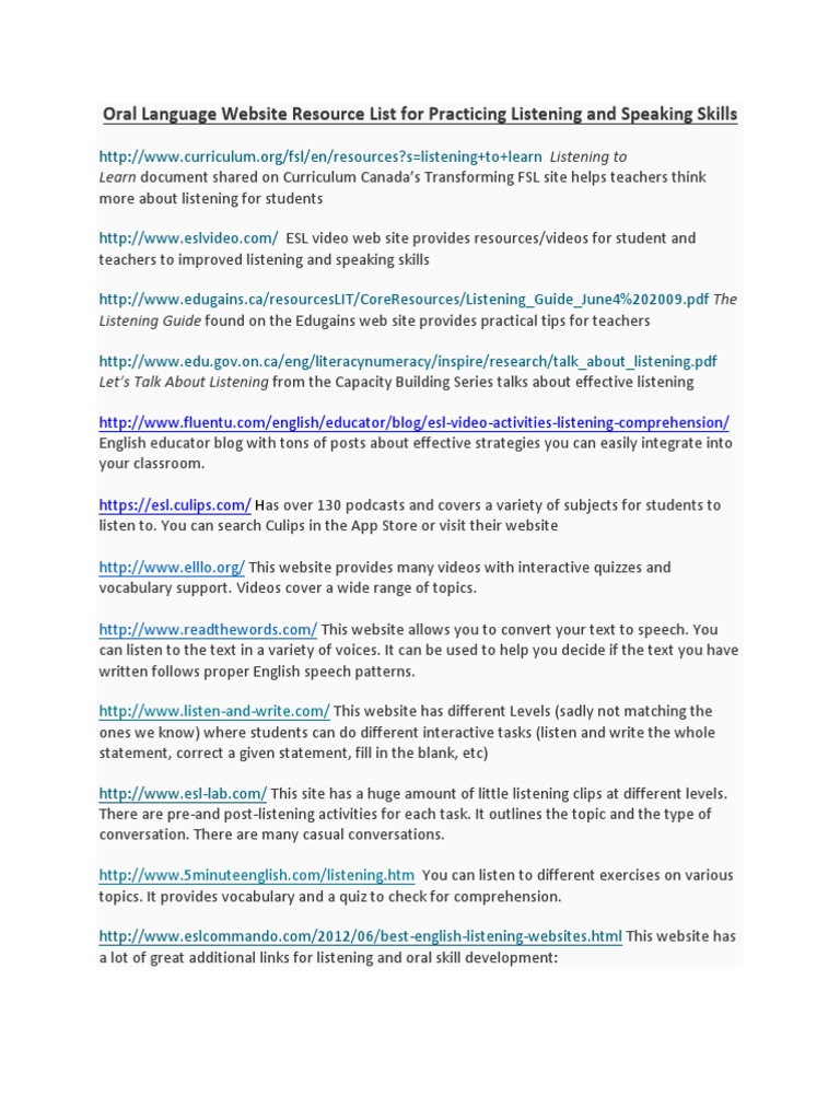 Listening And Speaking Website List English As A Second Or