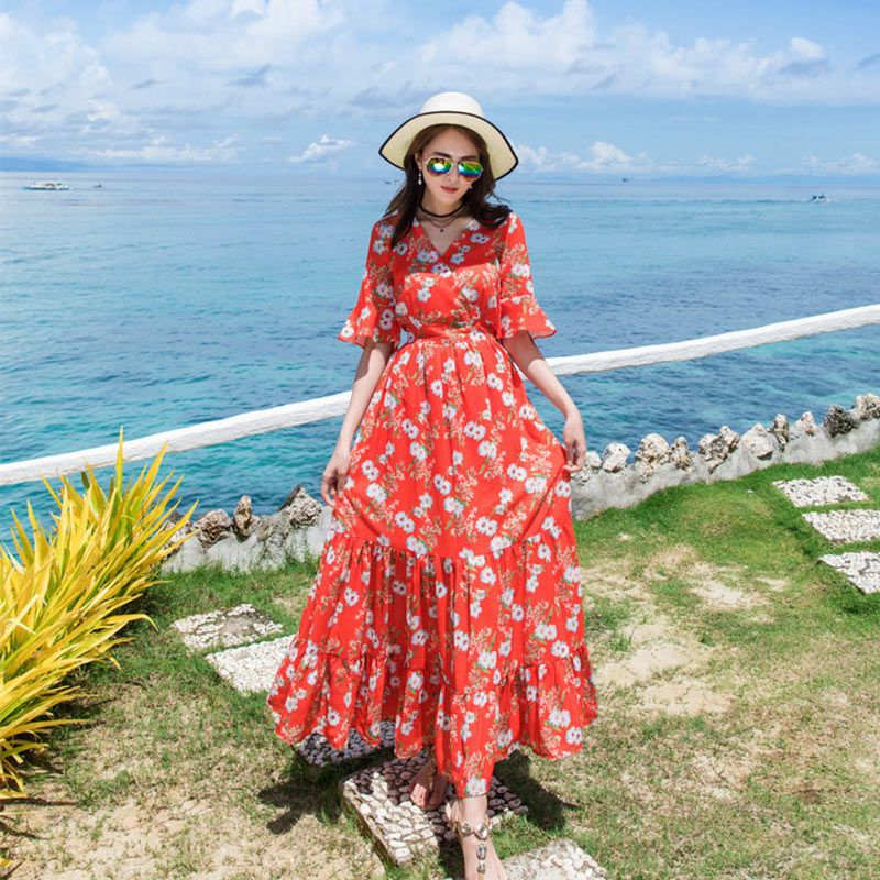 2020 Womens Floral Print Vintage Dress Plus Size Sweet Lady Half