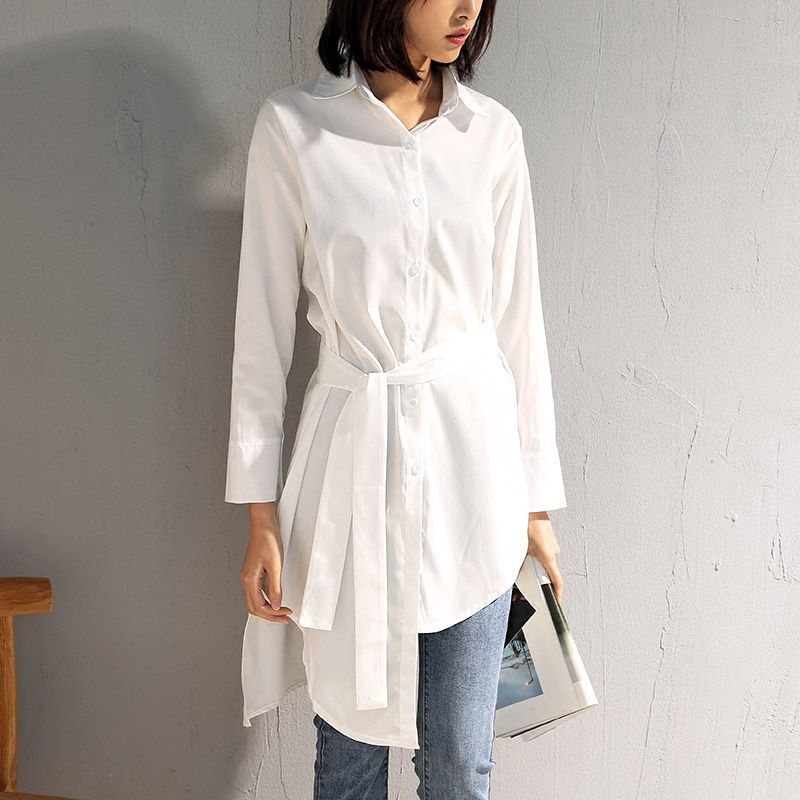 100 Cotton Long Women White Shirts Lady Office Work Loose Large