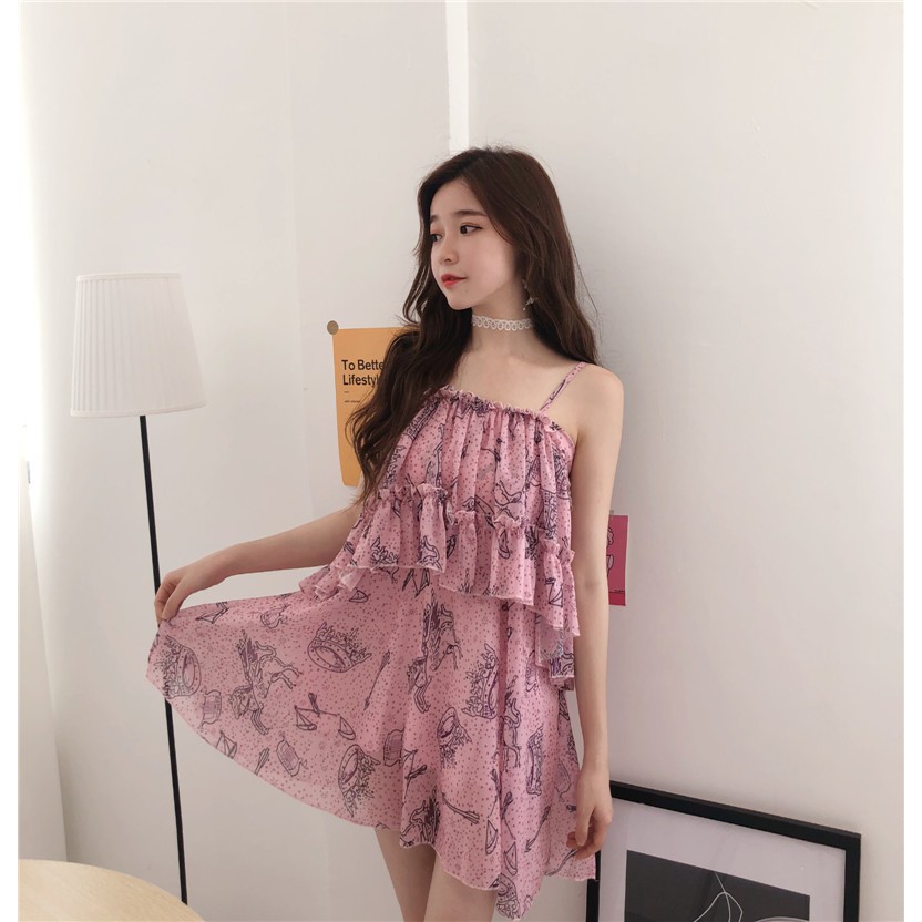 Halter Dress Ruffle Skirt Cute Pretty Dress Casual Sleeveless