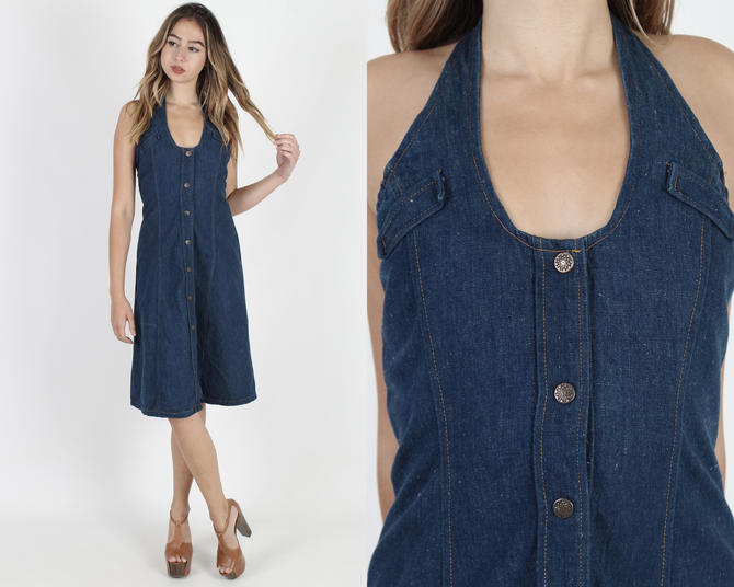 Vintage 80s Denim Dress Tight Sexy Blue Jean Dress 1980s Draped