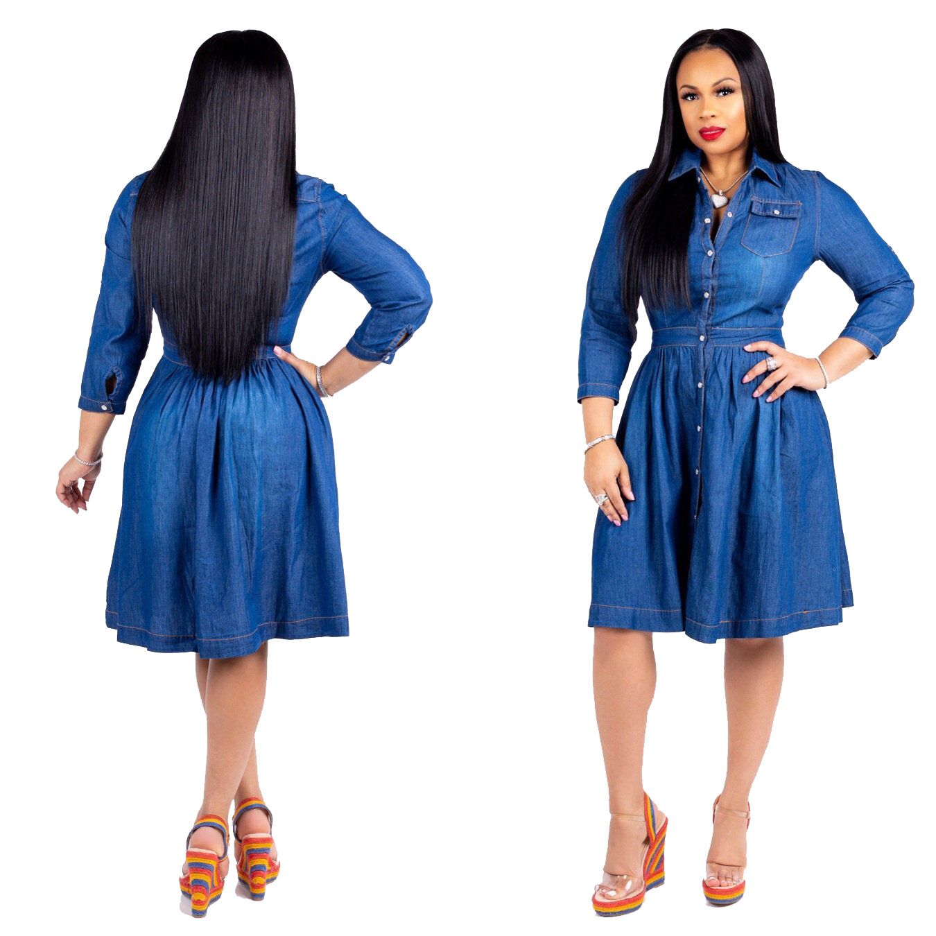 Denims Women Dresses Knee Length 3 4th Xxllent Casual