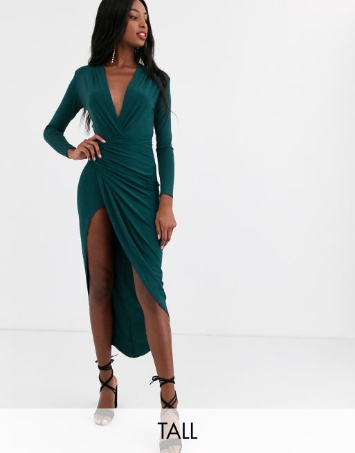 Tall Plunge Ruched Detail Maxi Dress Boohoo