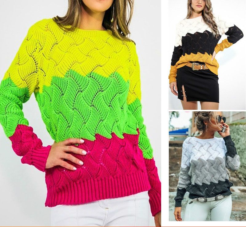 Beforw 2019 Women Winter Long Sleeve Crewneck Knitted Pullover Sweater Vintage Splice Casual Fall Womens Sweaters Pullovers Tops Mazome
