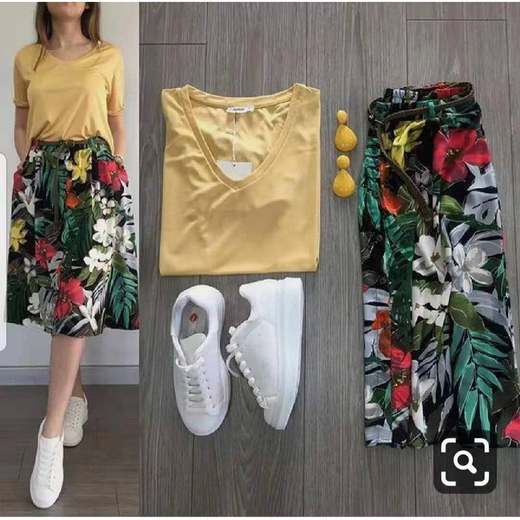 Casual Floral Elastic Waist Light Loose Skirt Veliter