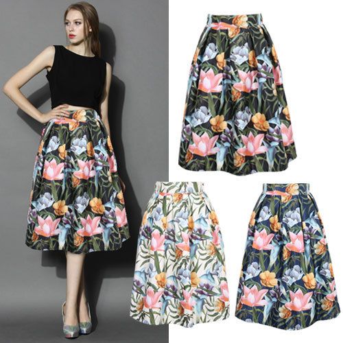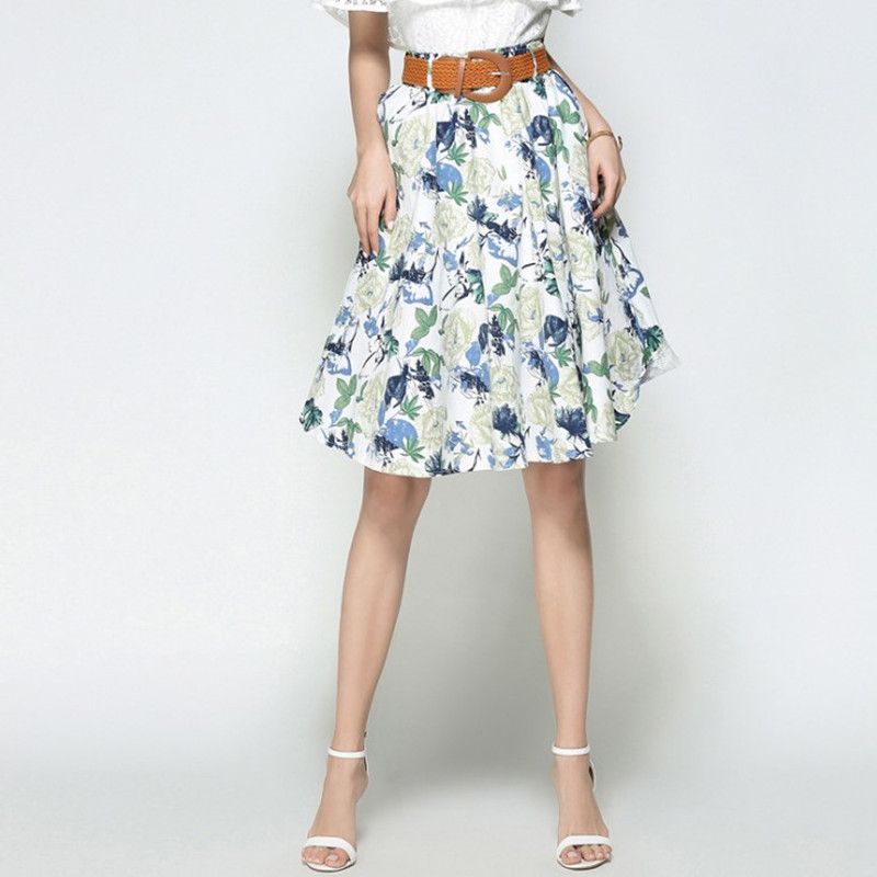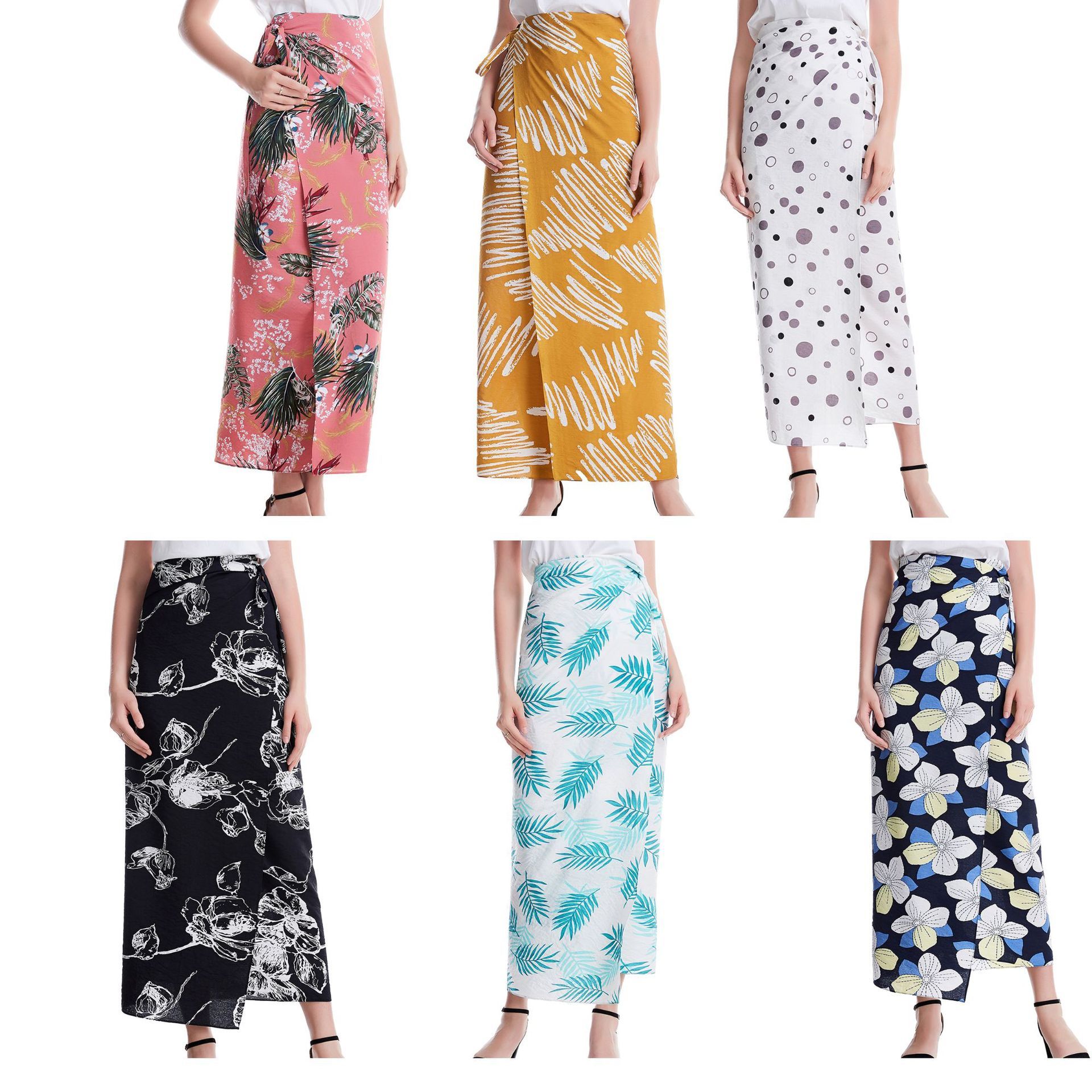 Summer Print A Line Prom Dresses Long Floral Skirt Ladies Casual