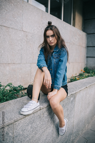 Cute Teenager Girl Blowng Air Kiss Wears Casual Outfit And Trendy