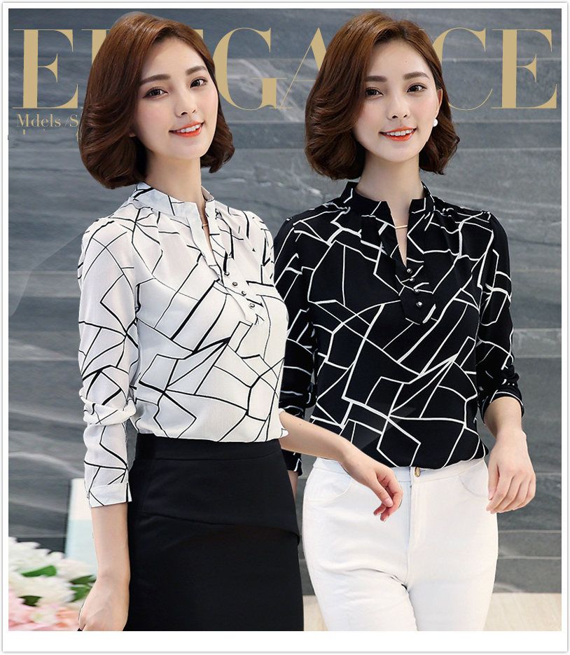 Women Office Lady Formal Career Long Sleeve Collar Shirt Casual
