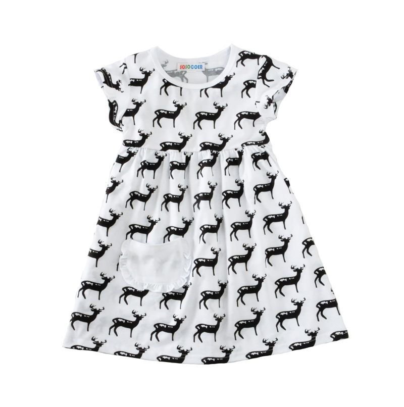 New Arrival Unicorn Girl Dresses Cotton O Neck With Printed