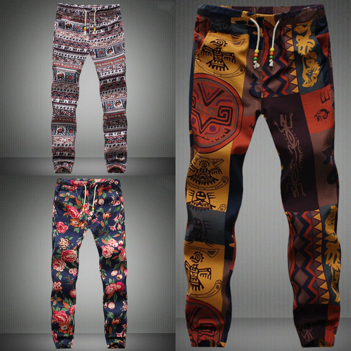 Mens Vintage Chinese Style Ethnic Pattern Cropped Harem Pants Us