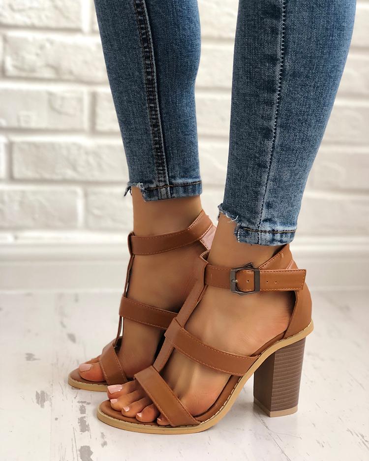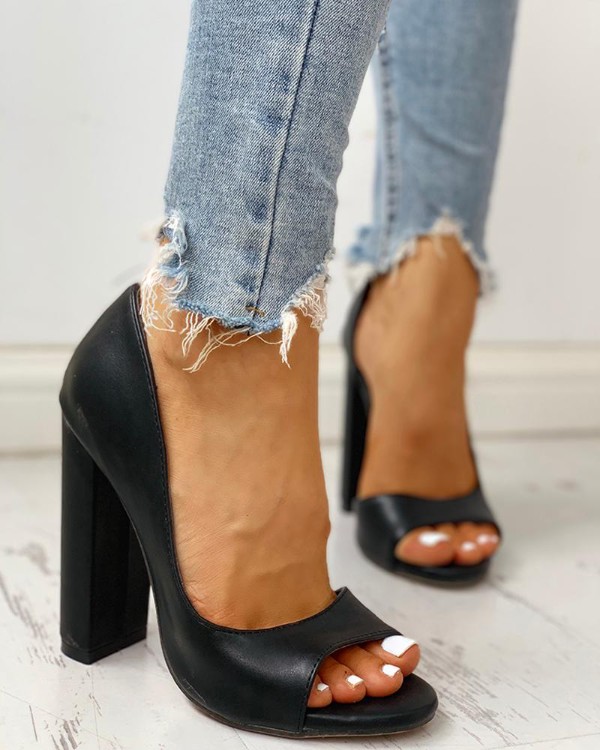 Shop Dolls Kill Open Toe Casual Style Plain Block Heels Heeled