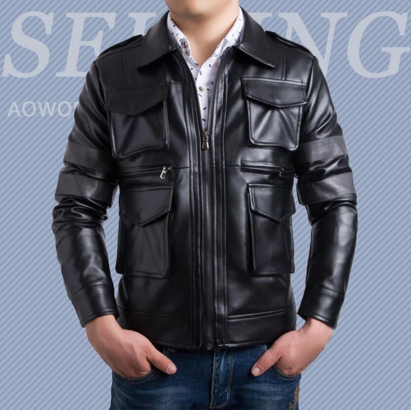 2020 Fashion Casual Slim Men Leather Jacket Zipper Design Mens