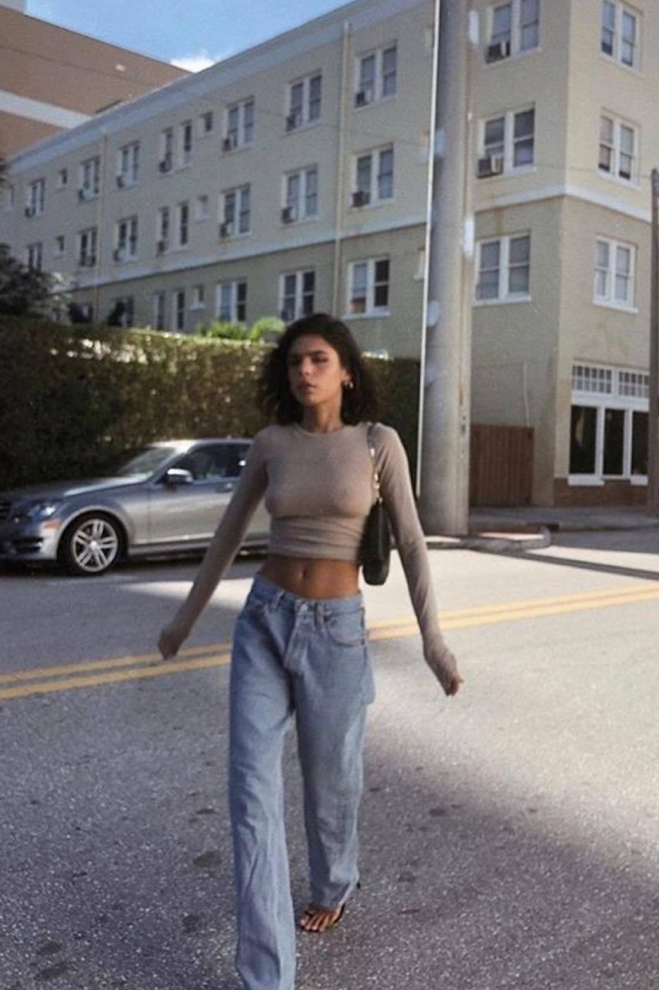 Stylish Beautiful Girl In Casual Clothes Jeans Crop Top And