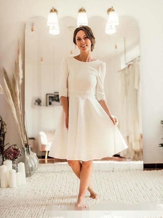 Simple A Line Straps Jewel Knee Length Lace Beach Wedding Dresses
