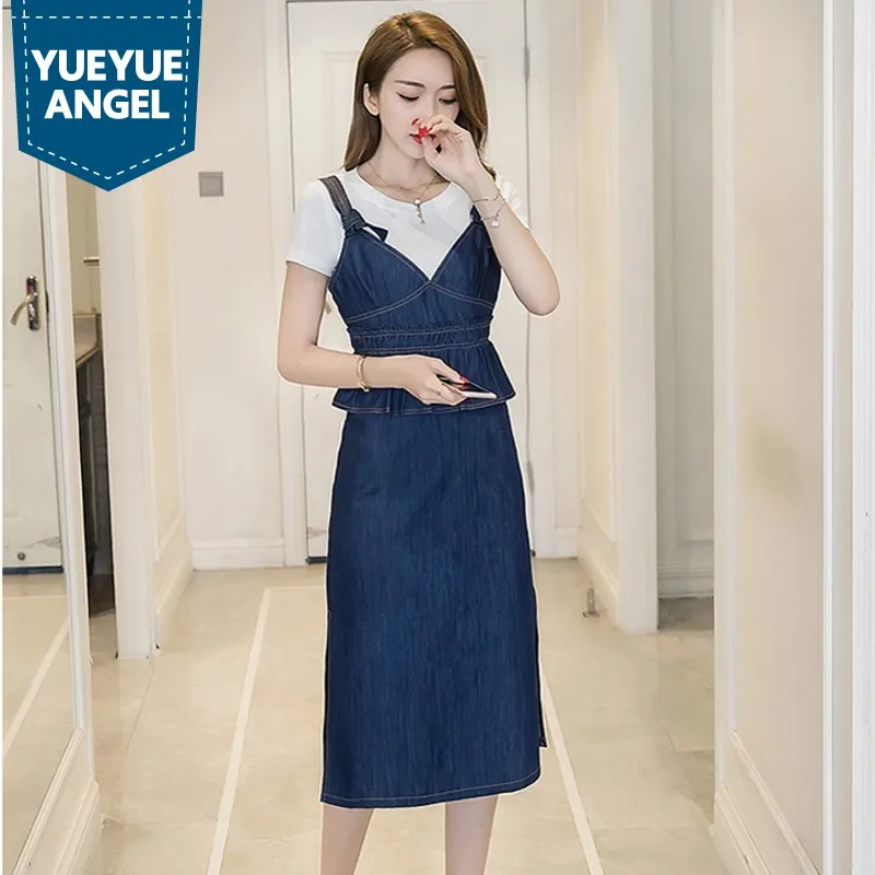Classic Summer Denim Skirts Womens Pleated Knee Length Jeans Skirt