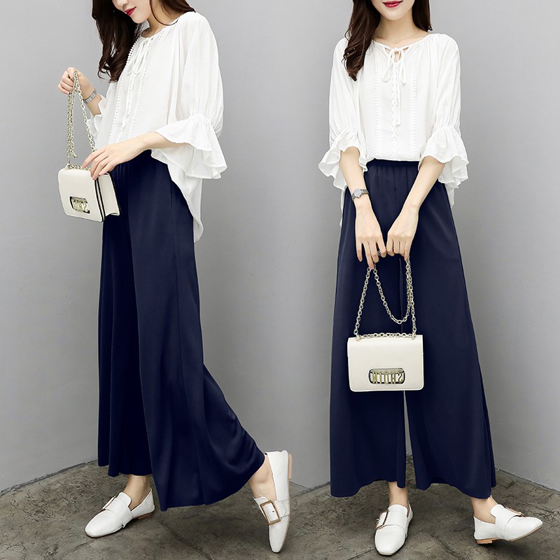 2 Pcs New Women Korean Ol Irregular Tops Nine Pants Casual