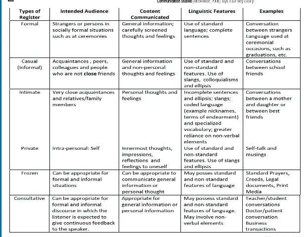 Language Registers Notes