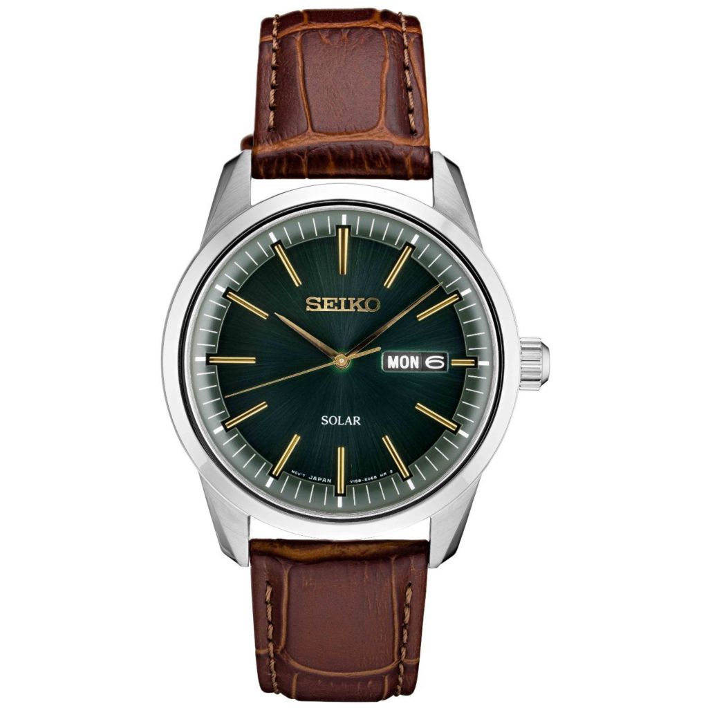Seiko Men S 40mm Solar Quartz Casual Day Date Leather Strap Watch