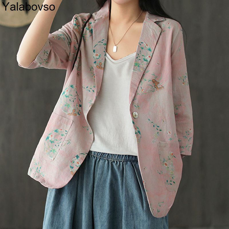 Blazer Feminino Women Linen Blazer Suit Jacket Female New Spring