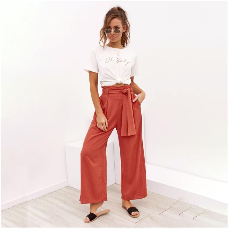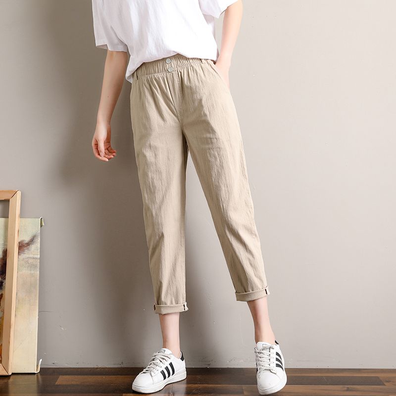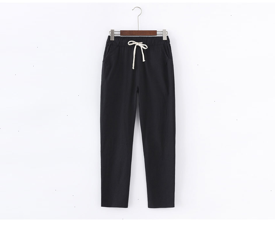 2020 Womens Casual Cotton Linen Pants Four Color Band With Broad