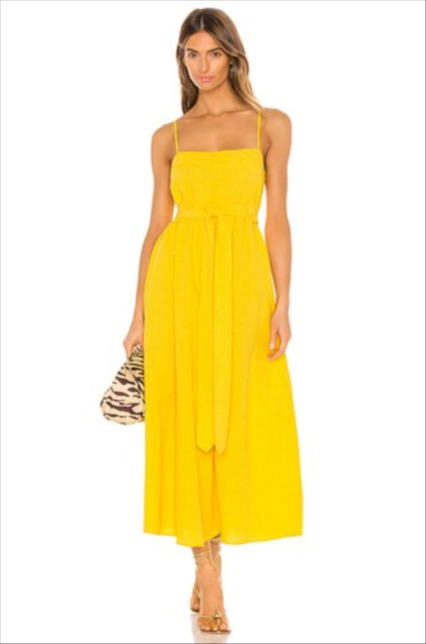 Long Flowing Maxi Dress Sleeveless Mikado Yellow Casual
