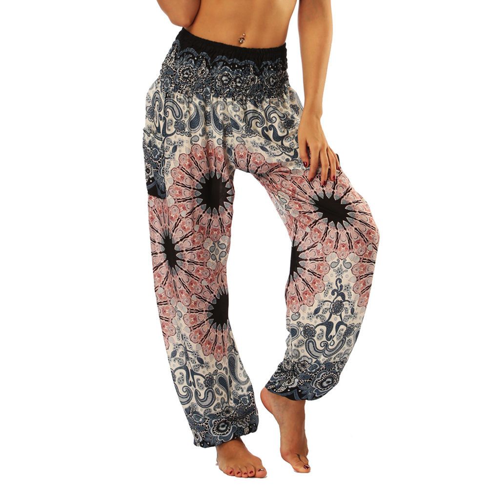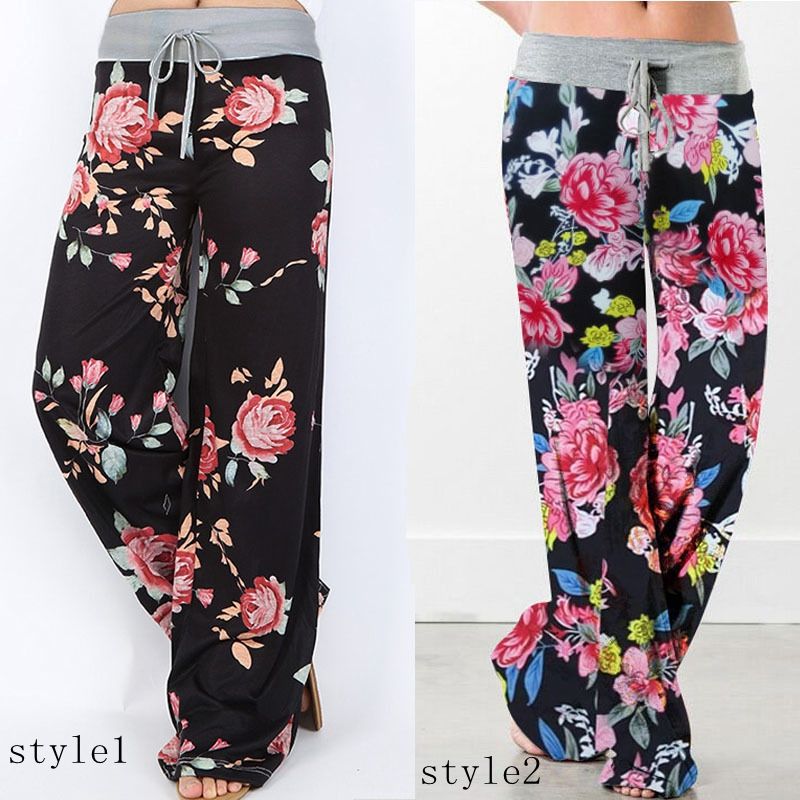 2020 Women Yoga Wide Leg Pant Floral Print Trousers Lady Loose