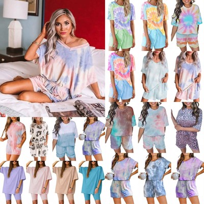 Compare Fashion Summer Womens Tie Dye Printed Short Pajamas Set