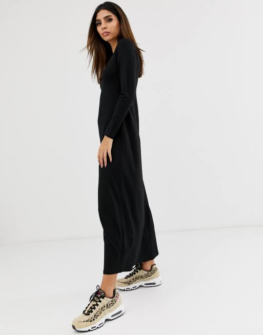Women S Fashion Slit Maxi Dress Sneakers And White Crop Leather